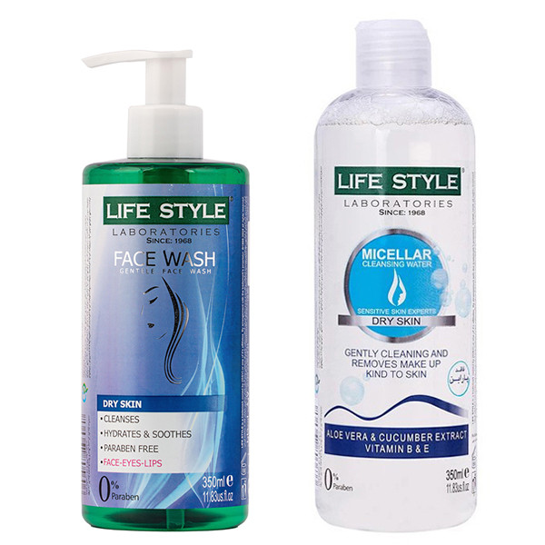 ژل شستشو صورت لایف استایل مدل گل سرخ حجم 350 میلی لیتر به همراه محلول پاک کننده آرایش صورت لایف استایل مدل آلوئه ورا حجم 350 میلی لیتر