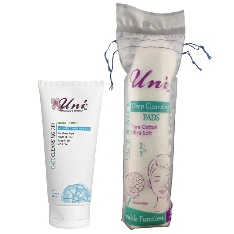 شیر پاک کن یونی لد مدل 01 مناسب برای پوست خشک و حساس حجم 200 میلی لیتر به همراه پد پاک کننده آرایش یونی لد بسته 80 عددی