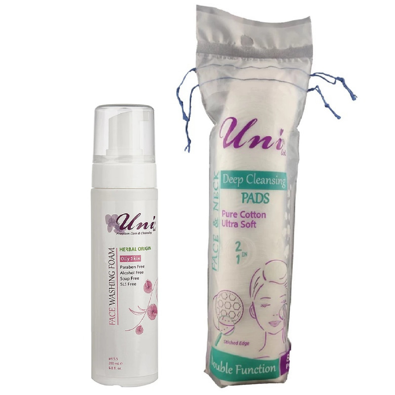 فوم شستشوی صورت یونی لد مدل 03 مناسب برای پوست چرب حجم 200 میلی لیتر به همراه پد پاک کننده آرایش یونی لد بسته 80 عددی