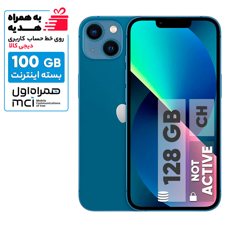 گوشی موبایل اپل مدل iPhone 13 CH دو سیم کارت ظرفیت 128 گیگابایت و رم 4 گیگابایت - نات اکتیو - به همراه بسته اینترنت 100 گیگابایتی یک ماهه همراه اول