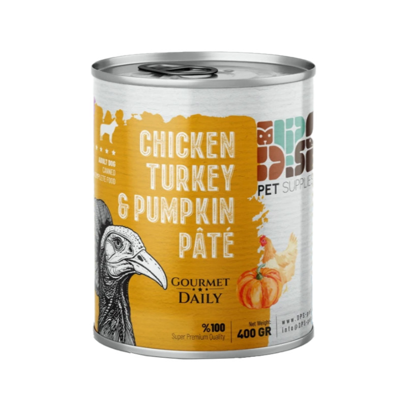 کنسرو غذای سگ دی پی اس مدل پته طعم مرغ، بوقلمون و کدو وزن ۴۰۰ گرم