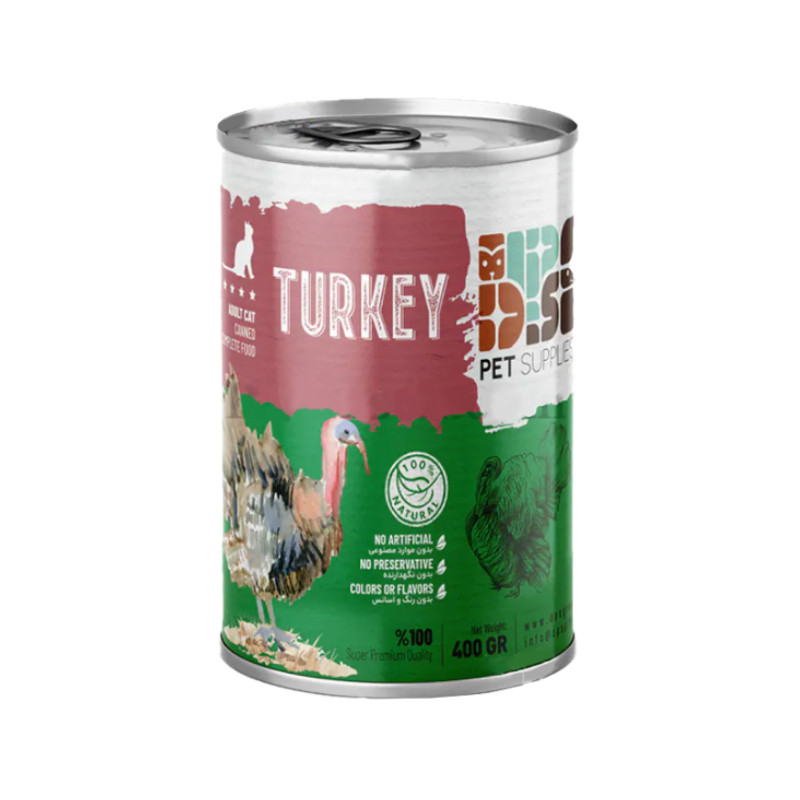 کنسرو غذای گربه بالغ دی پی اس مدل نچرال طعم بوقلمون وزن ۴۰۰ گرم