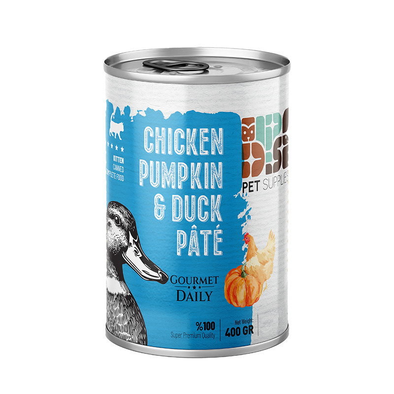 کنسرو غذای بچه گربه دی پی اس مدل پته طعم مرغ، کدو حلوایی و اردک وزن ۴۰۰ گرم