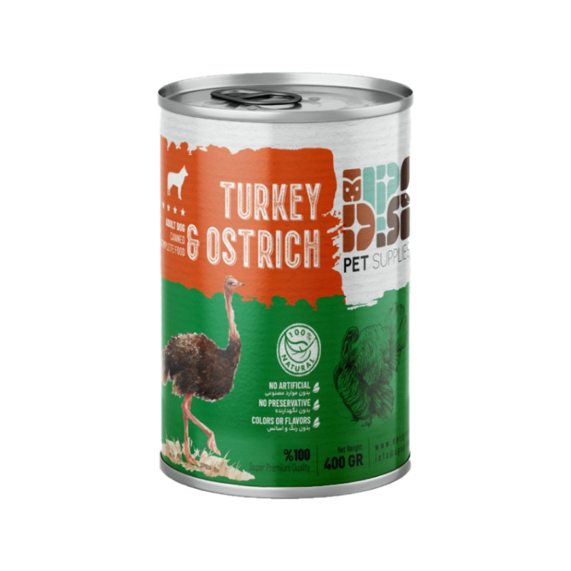کنسرو غذای توله سگ دی پی اس مدل نچرال طعم بوقلمون و شترمرغ وزن ۴۰۰ گرم