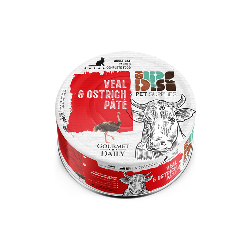 کنسرو غذای گربه بالغ دی پی اس مدل پته طعم گوشت گاو و شترمرغ وزن 200 گرم