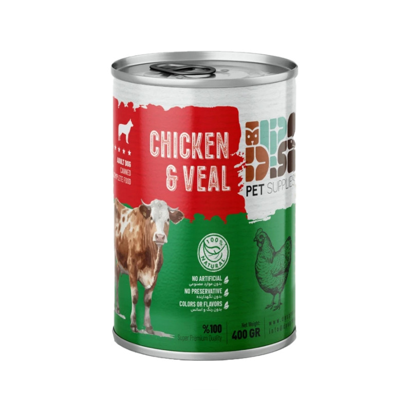 کنسرو غذای سگ دی پی اس مدل نچرال طعم مرغ، گوساله وزن ۴۰۰ گرم