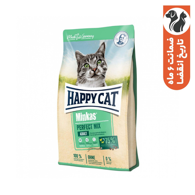 غذای خشک گربه بالغ هپی کت مدل مینکاس میکس طعم مرغ و بره و ماهی وزن 1 کیلوگرم