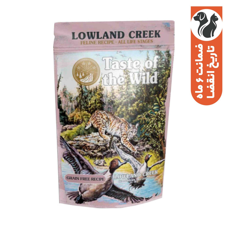 غذای خشک گربه بالغ تیست آف ویلد مدل Lowland Creek Feline Recipe طعم گوشت بلدرچین و اردک وزن ۶.۶ کیلوگرم