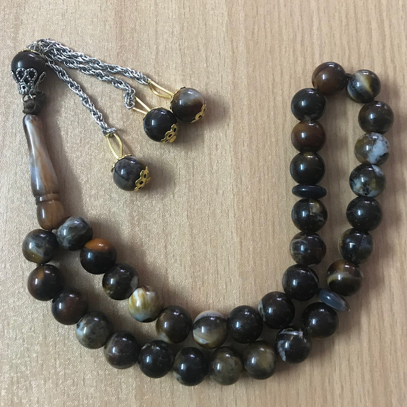 تسبیح نقره جات بافندگان مدل سنگ عقیق تایگر کد 856