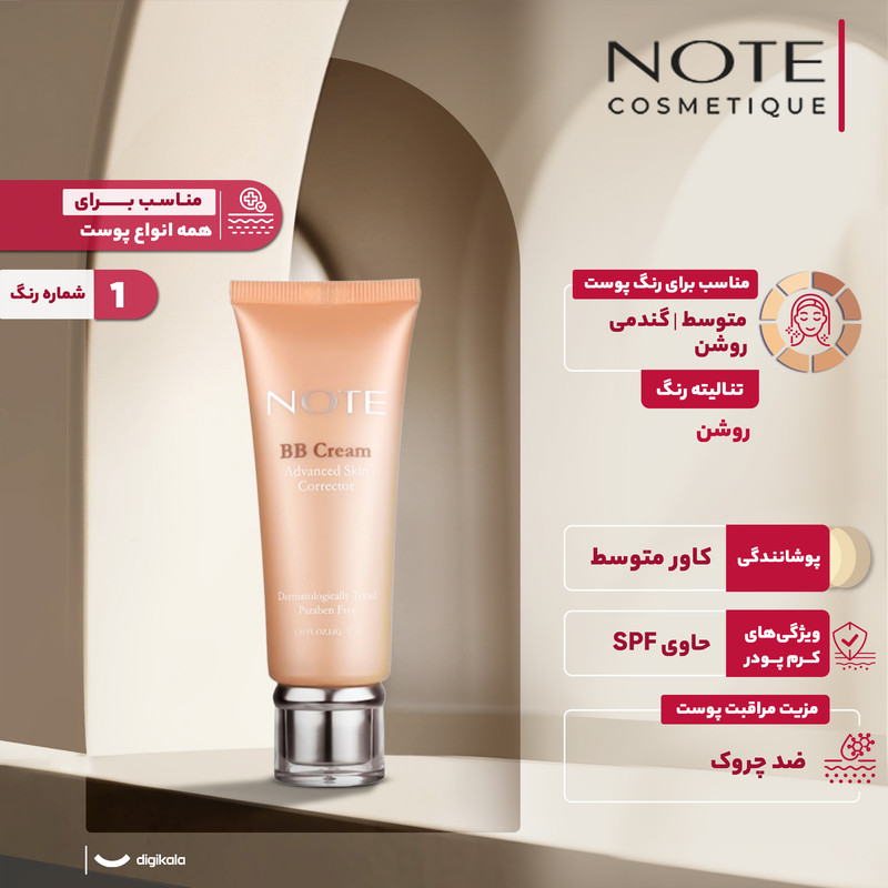 مقدار کافی از بی بی کرم را با پد یا دست روی پوست تمیز صورت پخش کنید تا ظاهری یکدست و هموار به وجود آید. در صورت تمایل میتوانید پیش از استفاده از این کرم پودر از پرایمرهای نوت برای زیرسازی پوست استفاده نمایید.