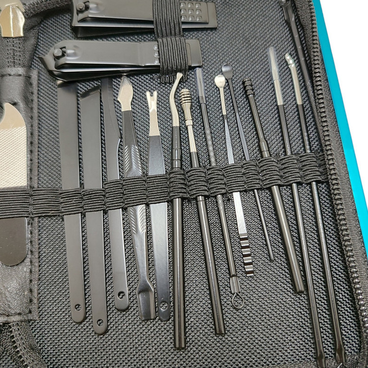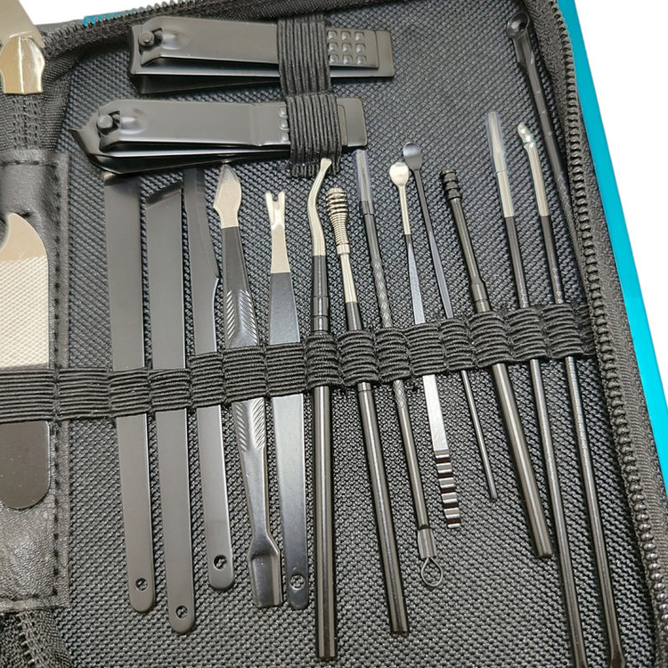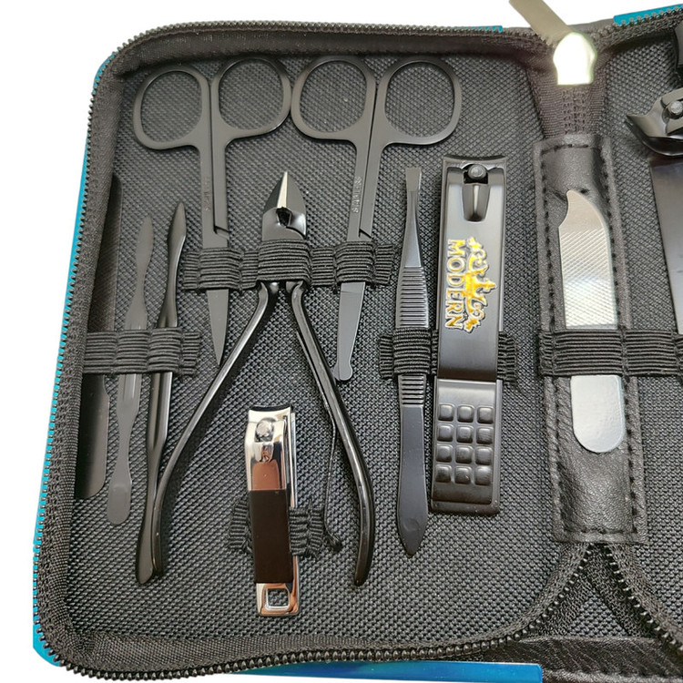 اقلام ست مانیکور: قیچی , موچین , برس ناخن , ناخنگیر , جداکننده انگشتان , سوهان , عقب زن , گوشت گیر , گوشه گیر