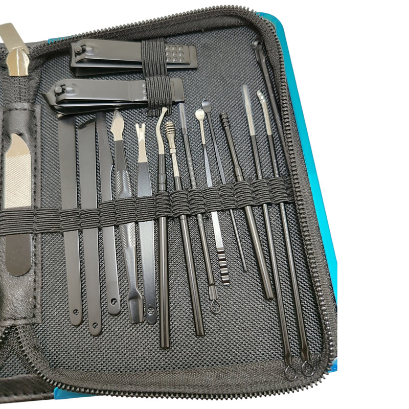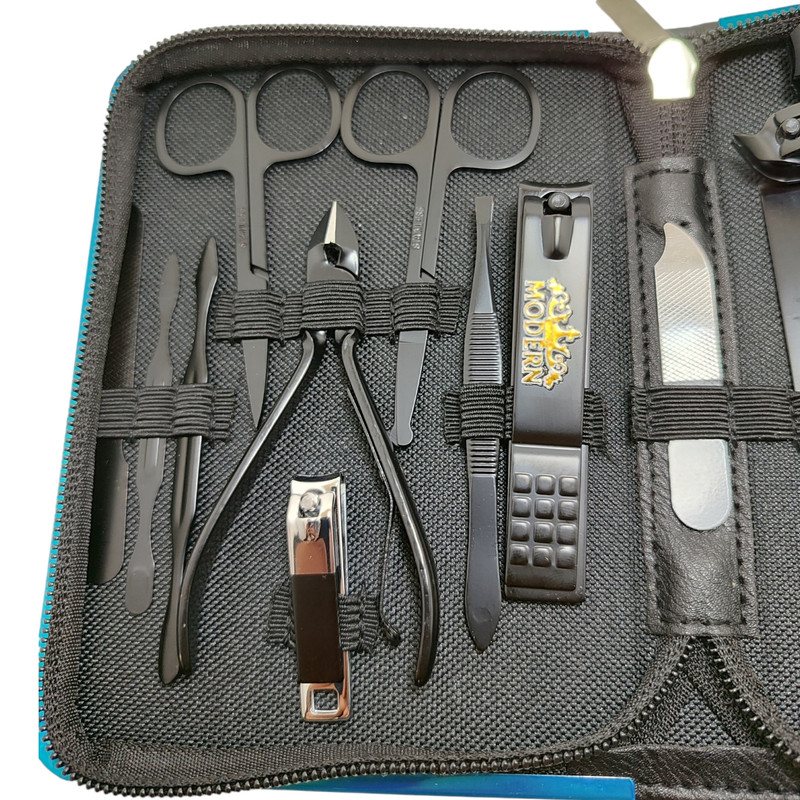اقلام ست مانیکور: قیچی , موچین , برس ناخن , ناخنگیر , جداکننده انگشتان , سوهان , عقب زن , گوشت گیر , گوشه گیر
