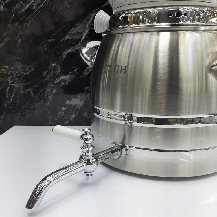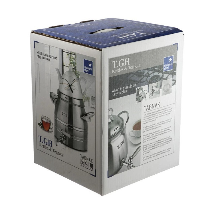 سایر توضیحات: استیل ۱۸/۱۰ با ضخامت ۱ میلی متر - کفه چدنی سه لایه (Capsule Bottom) و دسته های نسوز - دارای نشان استاندارد و گواهی ISO ۹۰۰۱