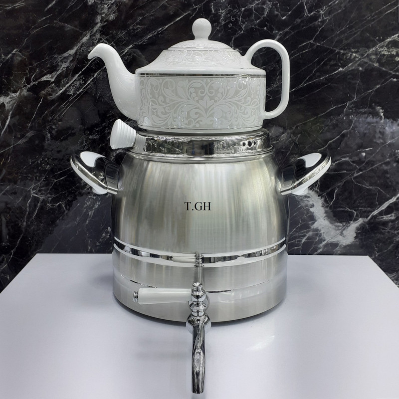 سایر توضیحات: استیل ۱۸/۱۰ با ضخامت ۱ میلی متر - کفه چدنی سه لایه (Capsule Bottom) و دسته های نسوز - دارای نشان استاندارد و گواهی ISO ۹۰۰۱