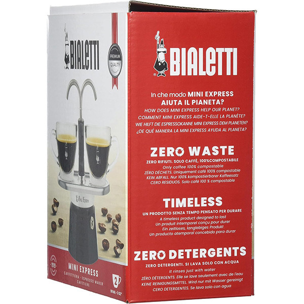 اسپرسو ساز بیالتی مینی اکسپرس ( mini express ) یک محصول چشمگیر و بسیار مناسب برای هدیه به علاقه مندان قهوه است که در اصل یک موکاپات در رنگهای بسیار جذاب است. این موکاپات صفحه ی نگهدارنده ی فنجان دارد که به محض تهیه قهوه، به داخل فنجان ریخته و می توان از قهوه تازه لذت برد. دسته ی پلاستیکی محصول این امکان را می دهد که به راحتی از روی اجاق برداشته شود و همچنین قهوه به سادگی داخل سبد آن قرار بگیرد. برتری این محصول نسبت به موکااکسپرس معمولی دم آوری قهوه مستقیم داخل فنجان است و نیاز نیست پس از دم آوری قهوه از مخزن به لیوان انتقال داد.این محصول یکی از بهترین طراحی های برند مطرح بیالتی در ایتالیا است.