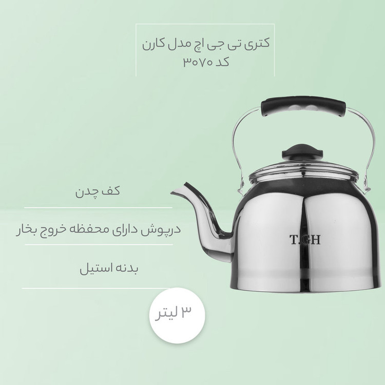 - دارای سطح استیل روی کتری به همراه 4 محفظه خروج بخار جهت قرار دادن قوری به قطر 14 سانتیمتر - دارای درپوش استیل به همراه محفظه خروج بخار آب - دارای لوله - کف چدن - براق