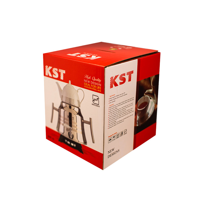 ست کتری و قوری شیردار مدل هرمی دسته استیل KST از بهترین برندهای کتری و قوری است.کفه ی ضخیم دایکاست که در این کتری به کار رفته باعث میشود حرارت به طور یکنواخت در کل کفه تقسیم شود و از سوختن کتری جلوگیری کند.شیر بلند این امکان را میدهد که بر روی هر اجاقی قابل استفاده شود.درپوش فنری و دسته های استیل از دیگر مزایای آن است. طراحی بسیار زیبا در کنار کیفیت بالا شاخصه ی کتری های کی اس تی است که آن را باب میل سخت پسندان میکند.