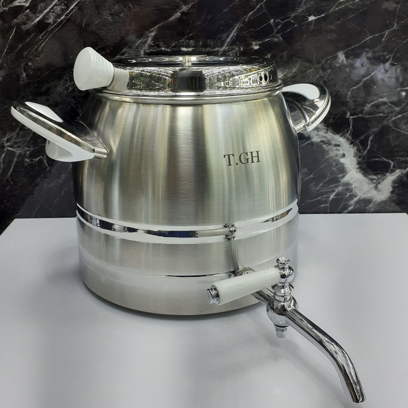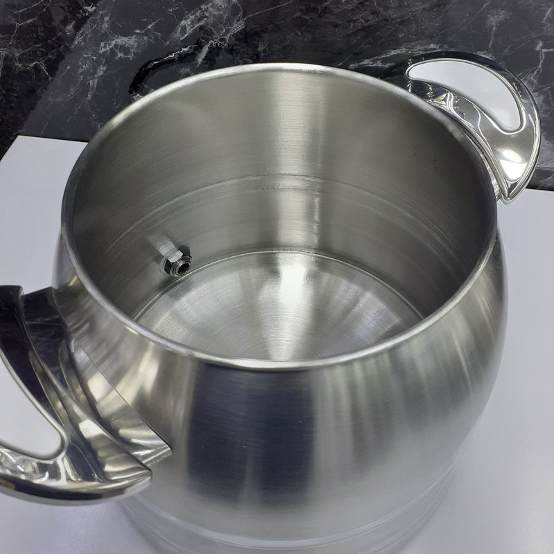 سایر توضیحات: استیل 18/10 با ضخامت 1 میلی متر - کفه چدنی سه لایه (Capsule Bottom) و دسته های نسوز - دارای نشان استاندارد و گواهی ISO 9001