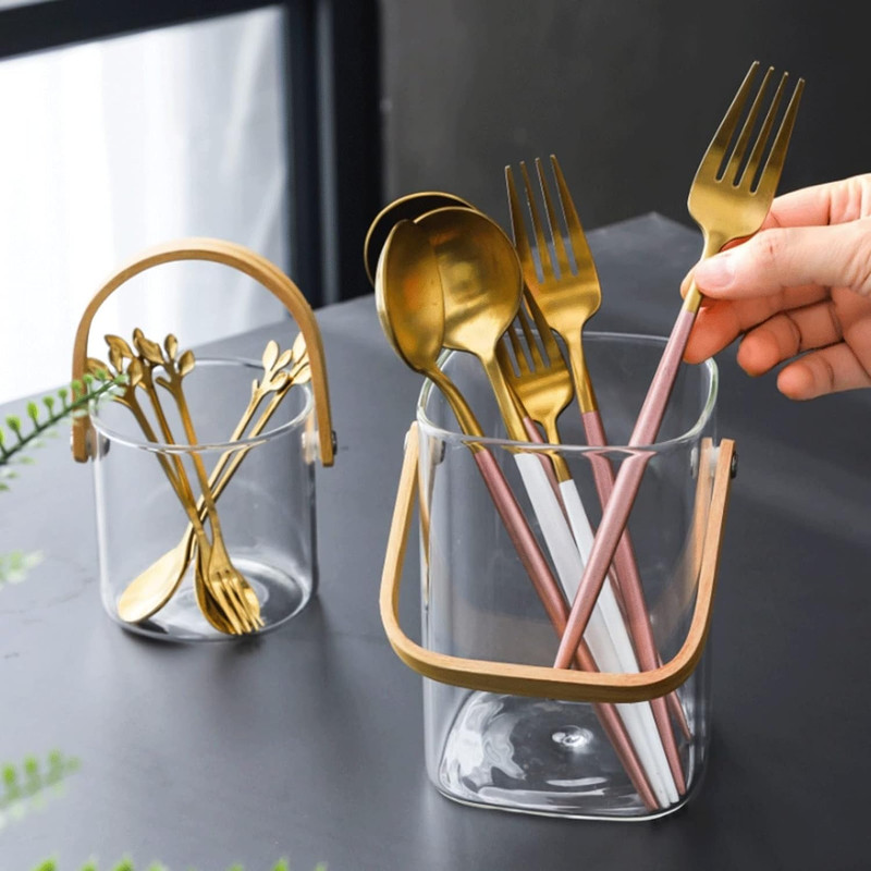 این آبچکان کارد و چنگال سازمان دهنده کاردک، قاشق چوبی، لیسک، ملاقه سوپ، انبر، چاپستیک است. میزهای شما را تمیز، مرتب و بدون آشفتگی نگه می دارد.