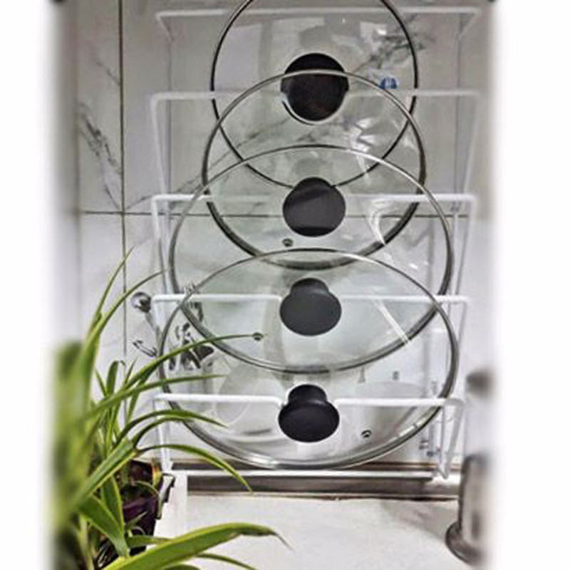 - استند نگهدارنده درب قابلمه - مناسب نصب روی کابینت - استفاده از طبقه اول جهت آویز حوله آشپزخانه