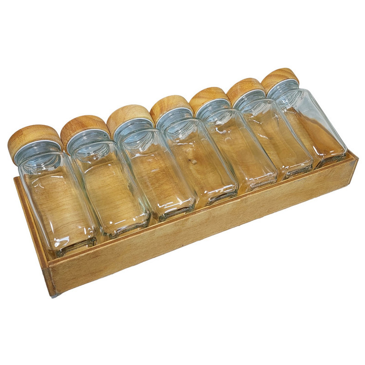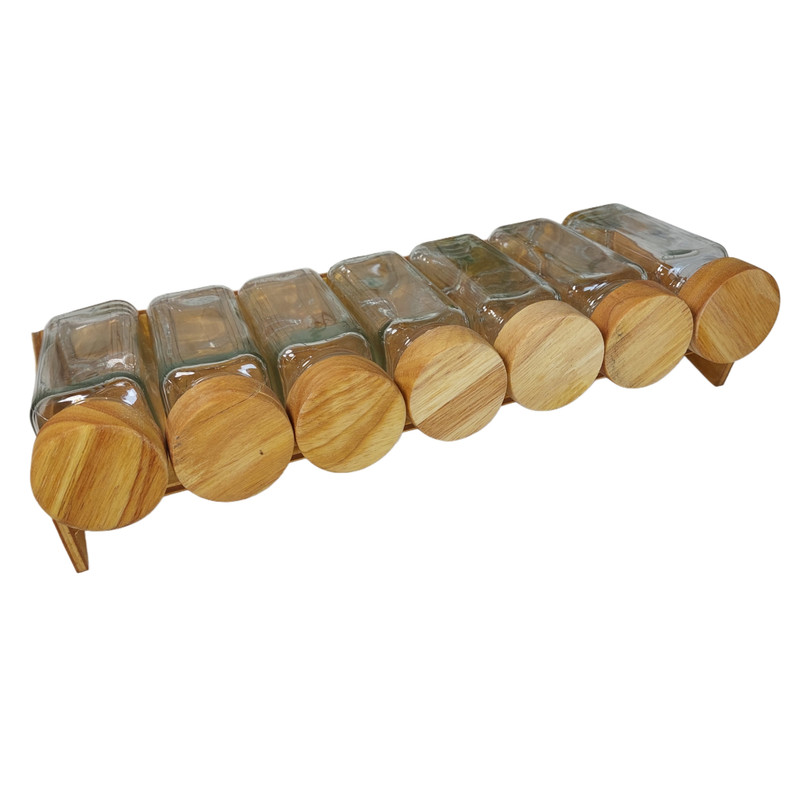 تعداد ۷ عدد جا ادویه به همراه ۱ استند چوبی مجموعا ست جا ادویه ۸ پارچه را تشکیل میدهد