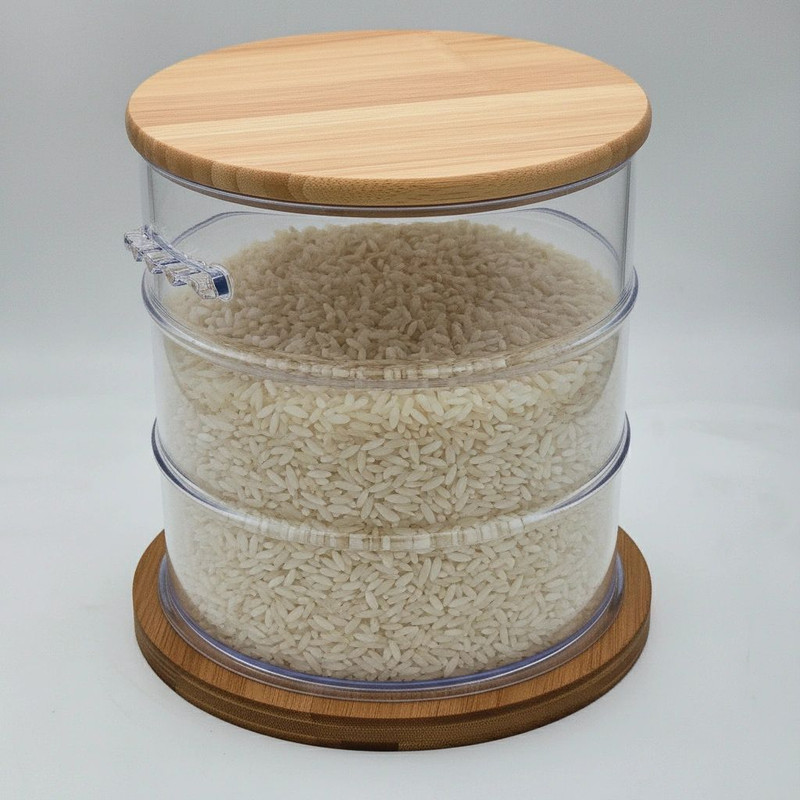 ظرفیت این مدل ظرف برنج 5 کیلو می باشد. شمامی توانید بجز برنج محصولات دیگری هم داخل این ظروف بریزید یک گزینه خوب برای آرد، حبوبات، نون خشک و ... می باشد.