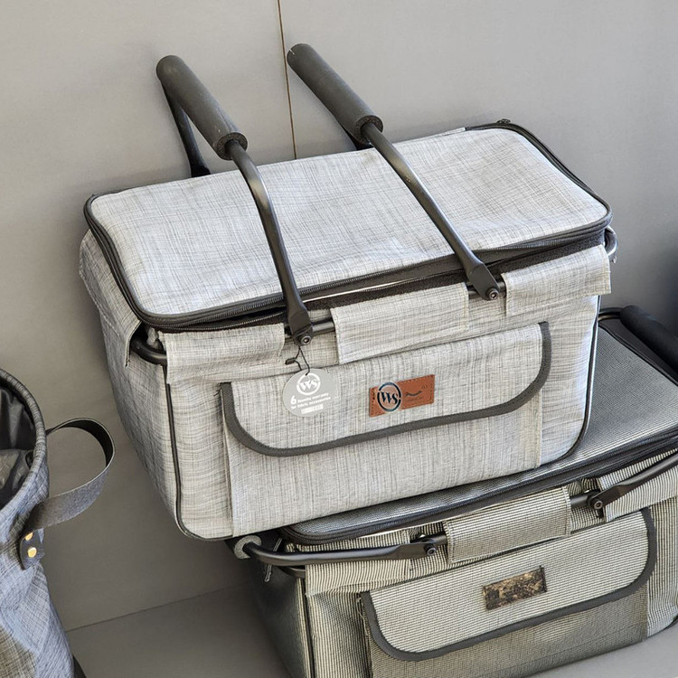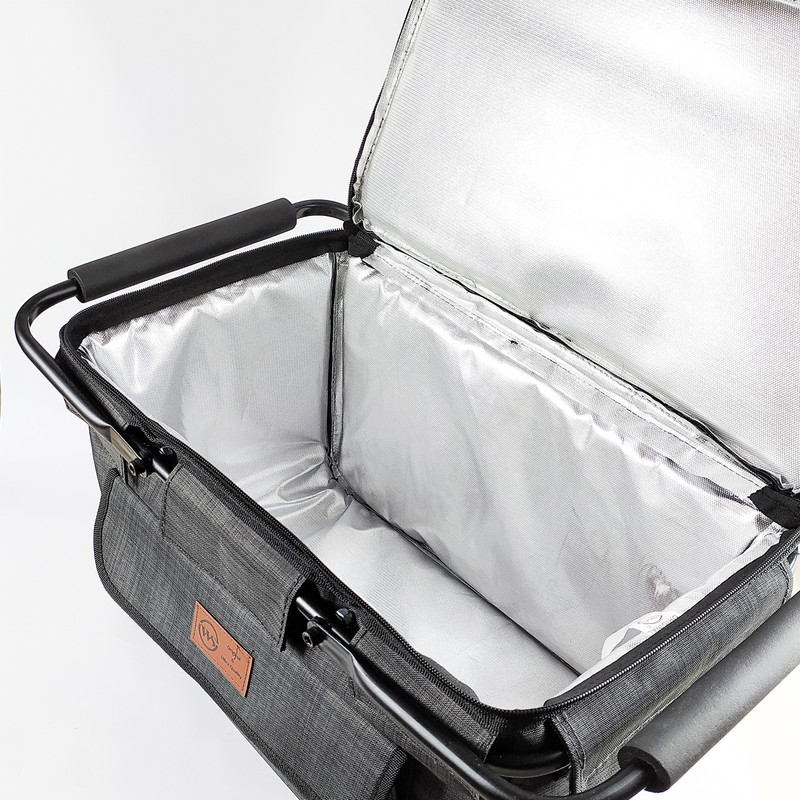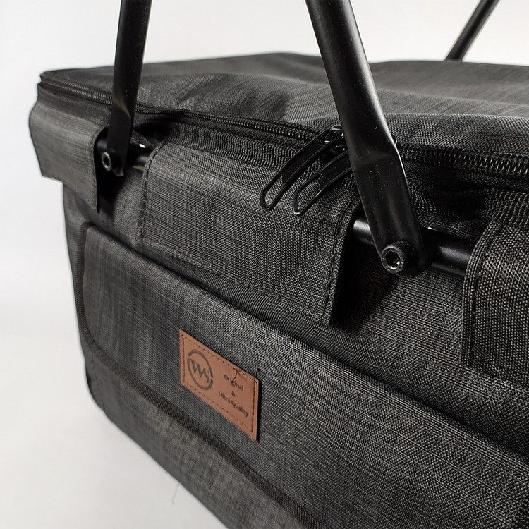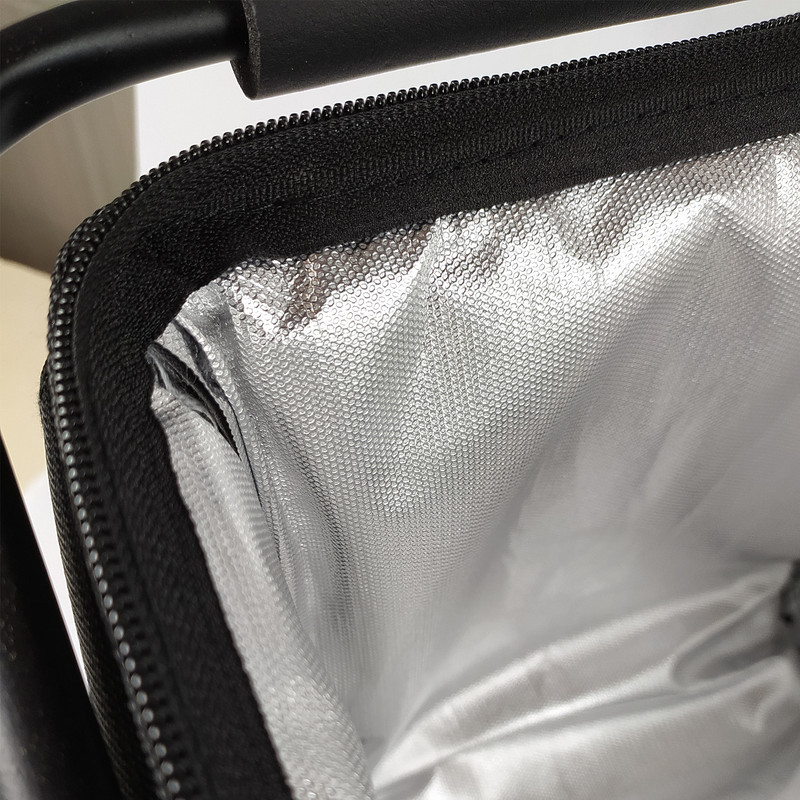 دارای شاسی فلزی برزنت مقاوم و اعلا با روکش الومینیوم داخلی دو دسته فلزی با روکش فوم سیلیکون تاشو و کم جا