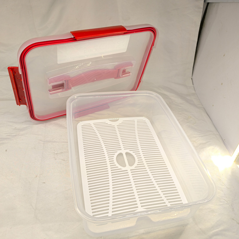 دستهبندی: ظرف نگهدارندهنوع درب: قفلیابعاد: 30x23x10 سانتیمتروزن: 600 گرمجنس بدنه: پلاستیک شفافشکل ظرف : مستطیلنمایش بیشتر