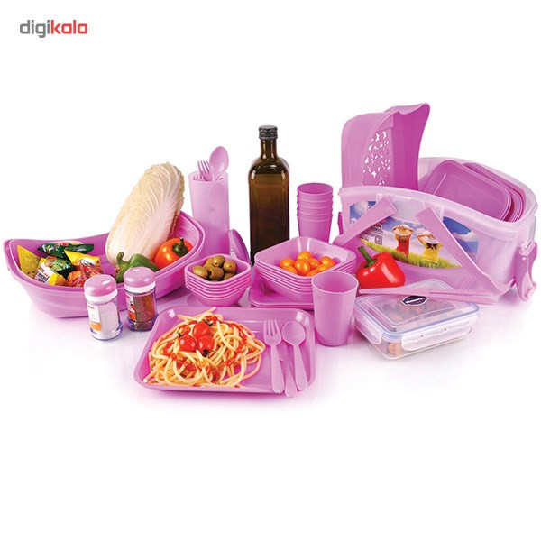 - مناسب 6 نفر - دارای کلیهی ظروف مورد نیاز برای سرو غذا - سبک با قابلیت حمل آسان - دارای سبد دستهدار
