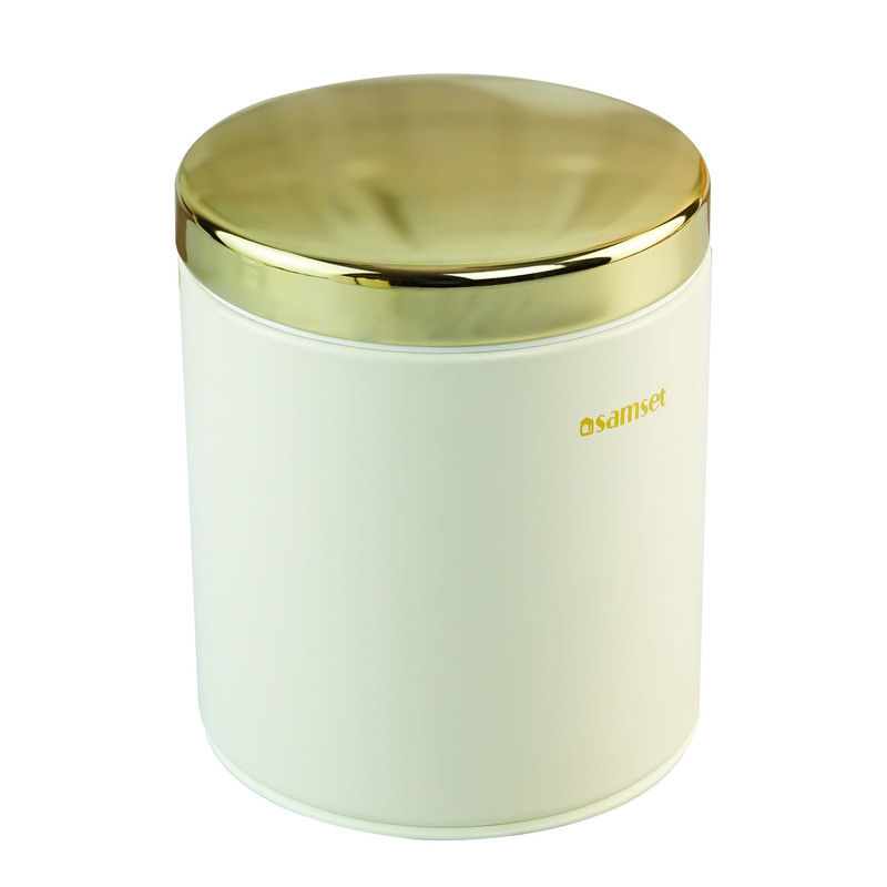 سطل شکر ۳ کیلویی استوانهای کرم درب طلایی با بدنه فلزی مقاوم و طراحی لوکس، گزینهای ایدهآل برای نگهداری شکر در آشپزخانه است. این محصول با گنجایش مناسب، ضد رطوبت و ظاهری شیک، تازگی و نظم را به محیط آشپزخانه میبخشد.