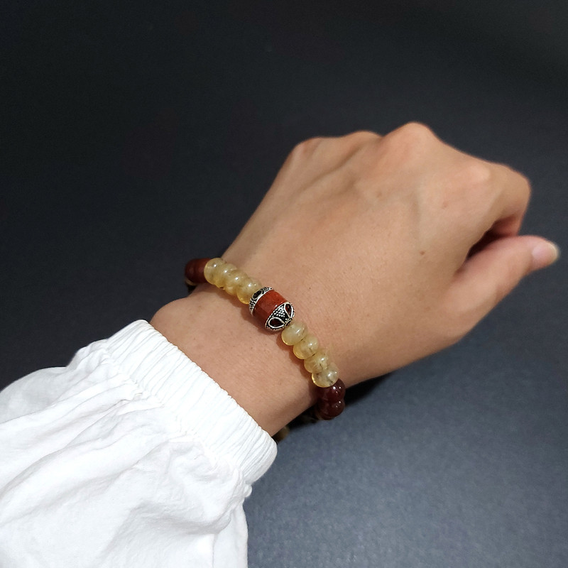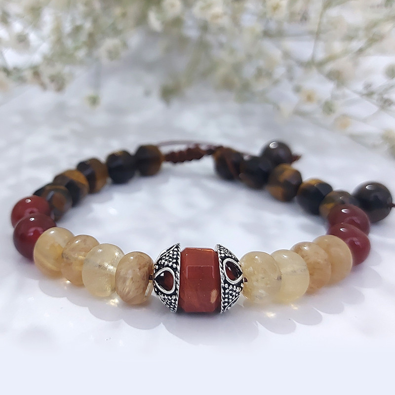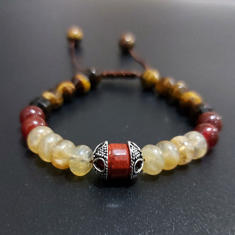 دستبند ناماسته مدل چشم ببر و عقیق قرمز و سیترین و جاسپر کد 11