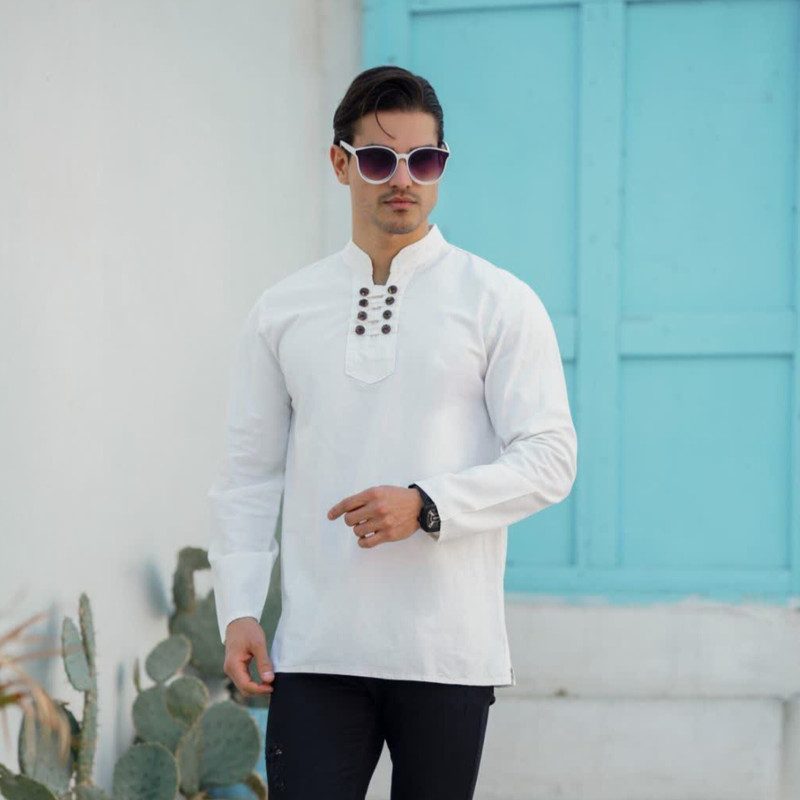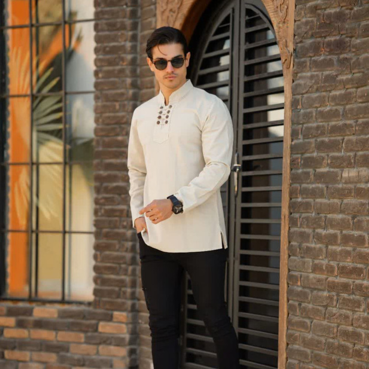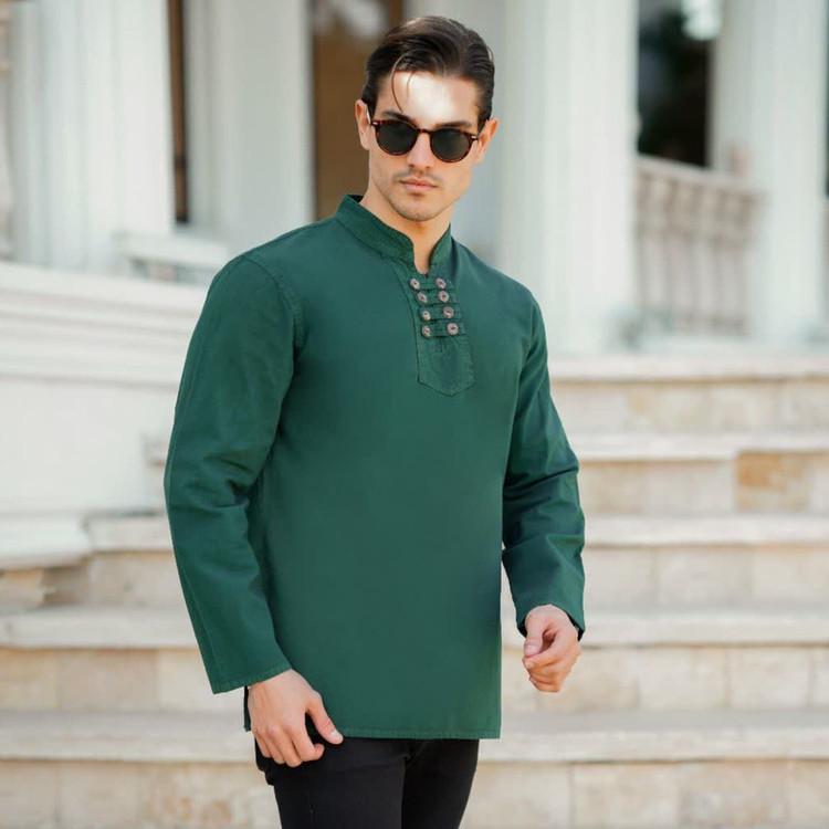 پیراهن آستین بلند یقه دیپلمات مردانه مدل 8 دگمه