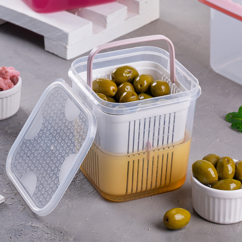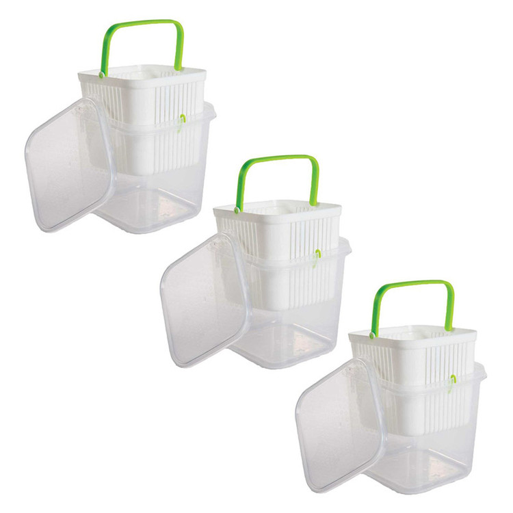 - یک ظرف یک آبکش و یک در از جنس پلی پروپیلن به گنجایش داخلی 1.125 لیتر، وزن 138 گرم و ابعاد 12.5 × 11.8 × 11.8 سانتیمتر - BPA Free - قابل بازیافت - دارای تاییدیه انجمن نانو - آنتی باکتریال - ضد گرد و غبار