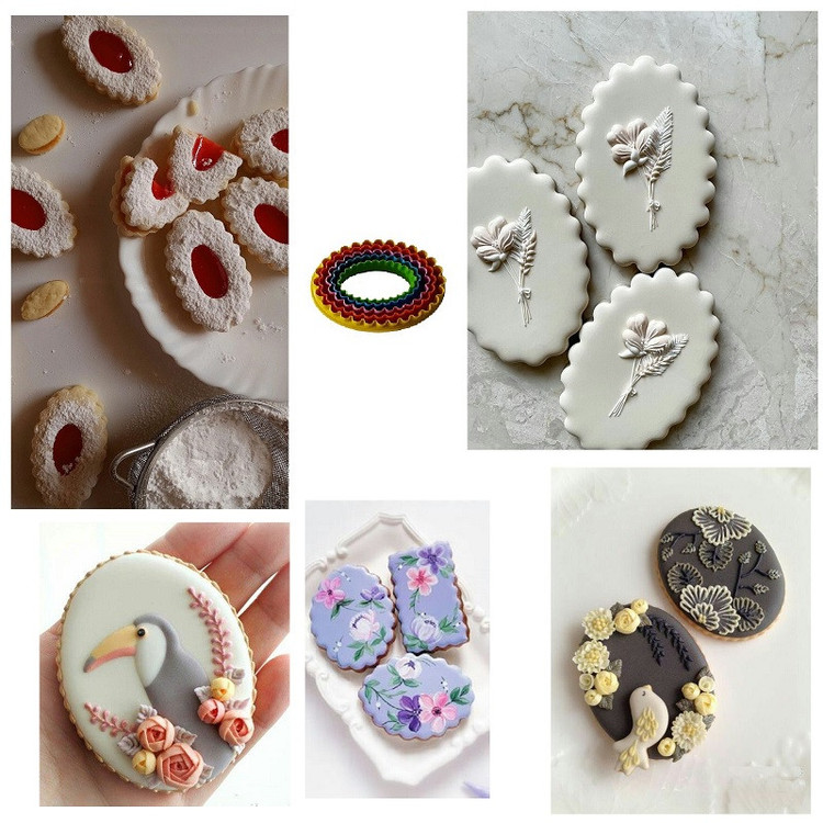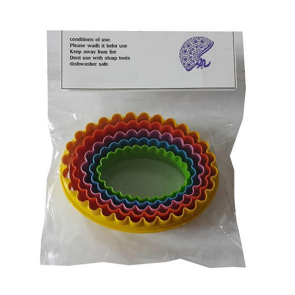 این مجموعه شامل 5 عدد کاتر دو طرفه مدل بیضی دالبر و صاف میباشد ابعاد بزرگترین سایز:4×7×9/8 سانتی متر ، 4×6×8/8 ،4×5×7/9 ، 4×4/2×6/5 ، 4×3/5×5/9 ، ابعاد کوچکترین سایز:4×2/7×5 سانتی متر