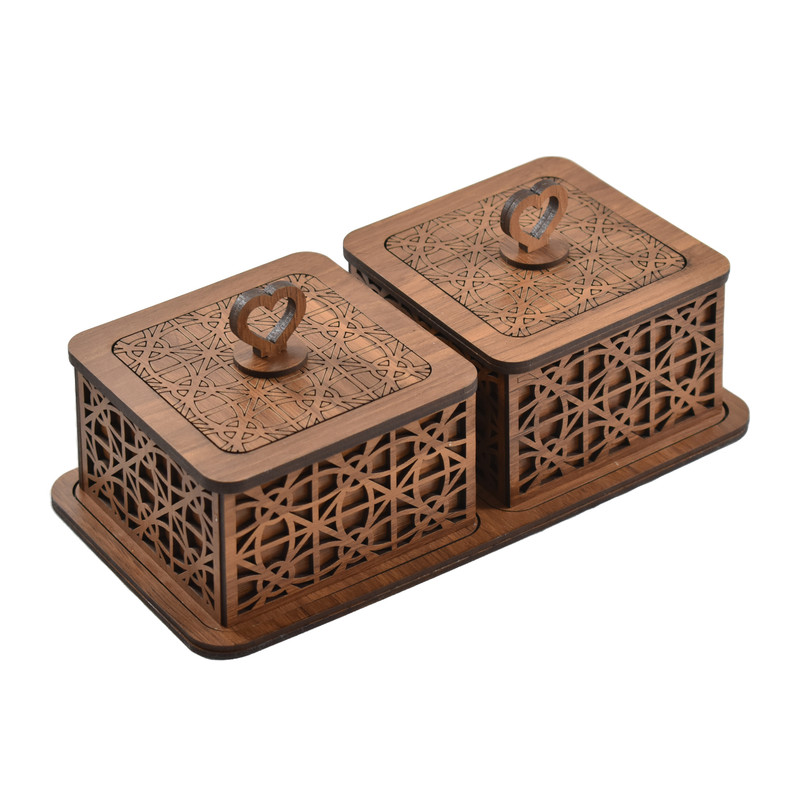 - کالای فوق از جنس ام دی اف دو طرف روکش دار ساخته شده است دارای دو عدد قندان و یک عدد زیری می باشد - قابل استفاده برای قند و شکلات و ... می باشد