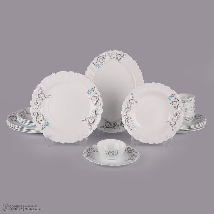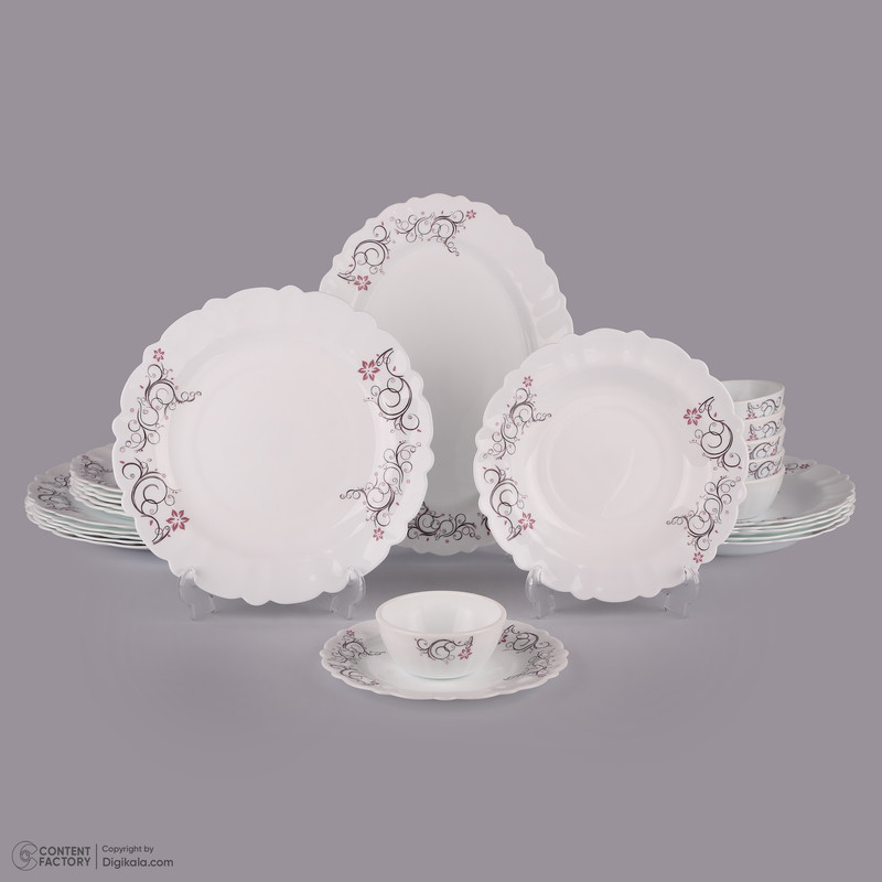 اقلام سرویس: ظرف سالاد , سالادخوری , دیس , بشقاب غذاخوری , بشقاب خورشخوری , پیشدستی , نمکپاش و فلفلپاش
