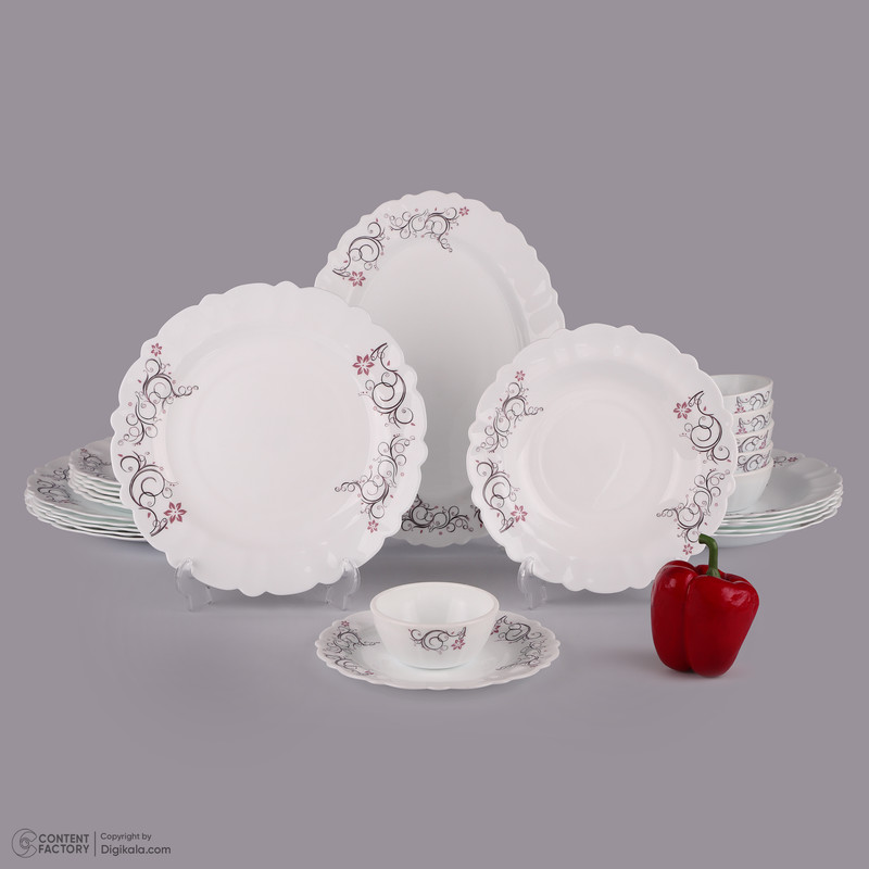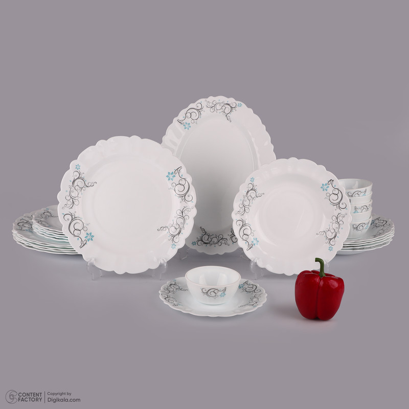 اقلام سرویس: ظرف سالاد , سالادخوری , دیس , بشقاب غذاخوری , بشقاب خورشخوری , پیشدستی , نمکپاش و فلفلپاش