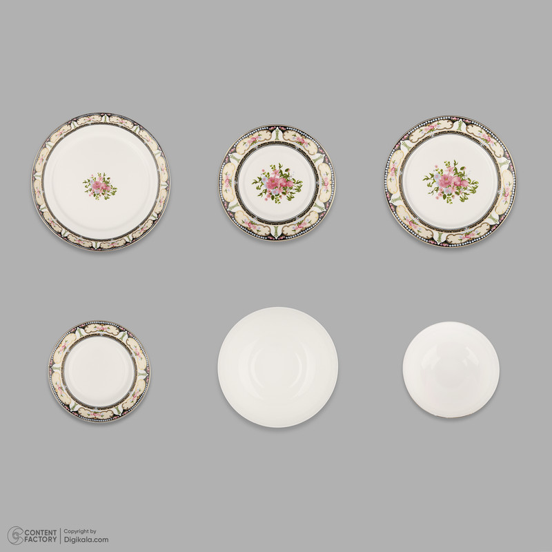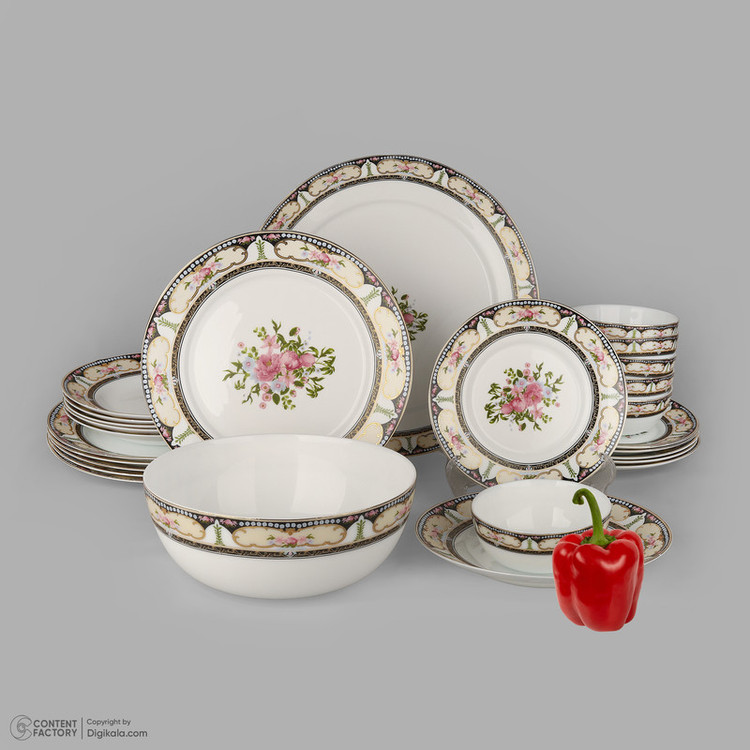 اقلام سرویس: بشقاب غذاخوری , بشقاب خورشخوری , دیس , ظرف سالاد , پیاله , پیشدستی
