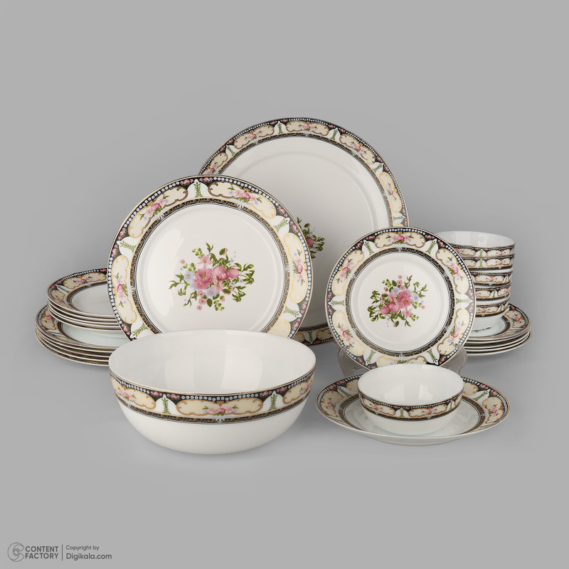 اقلام سرویس: بشقاب غذاخوری , بشقاب خورشخوری , دیس , ظرف سالاد , پیاله , پیشدستی