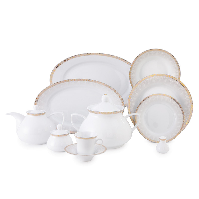 اقلام سرویس: سوپخوری , ظرف سالاد , دیس , بشقاب غذاخوری , بشقاب خورشخوری , پیشدستی , قوری چایخوری , فنجان , نعلبکی , قندان , نمکپاش و فلفلپاش , شیرخوری , پیاله