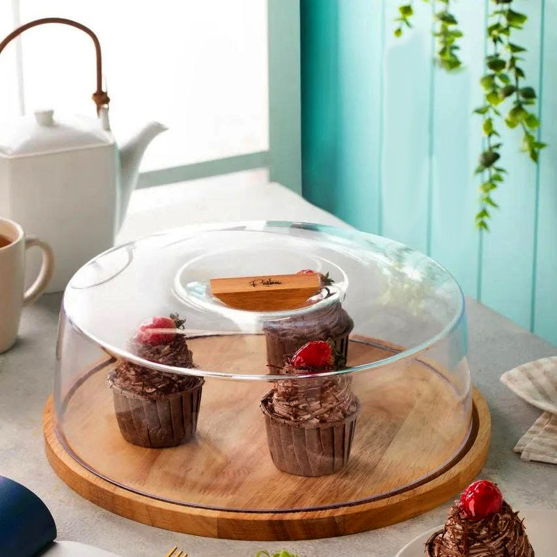 ظرف کیک تن تن مدل رایکا دارای یک سینی چوبی به قطر 32 سانتی متر در ارتفاع 1.5 سانتی متر و یک درب طلقی شفاف به قطر 29 سانتی متر در ارتفاع 9 سانتی متر است که روی آن یک دسته چوبی قرار داده شده. همچنین این ظرف کیک قابل شستشو با آب میباشد.