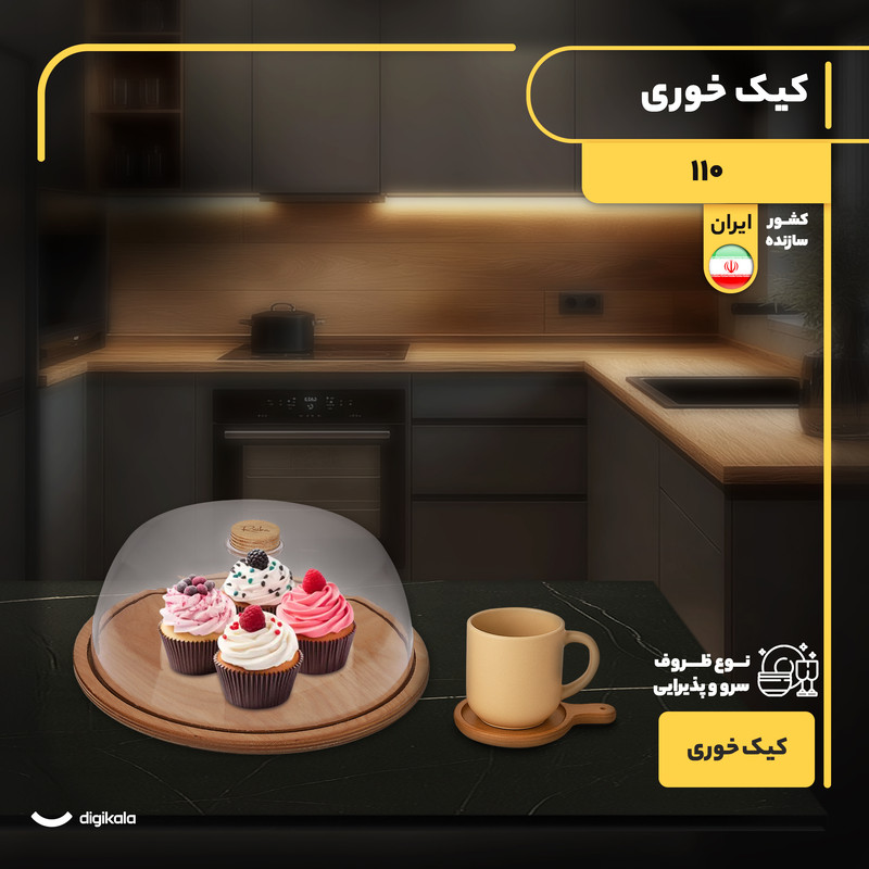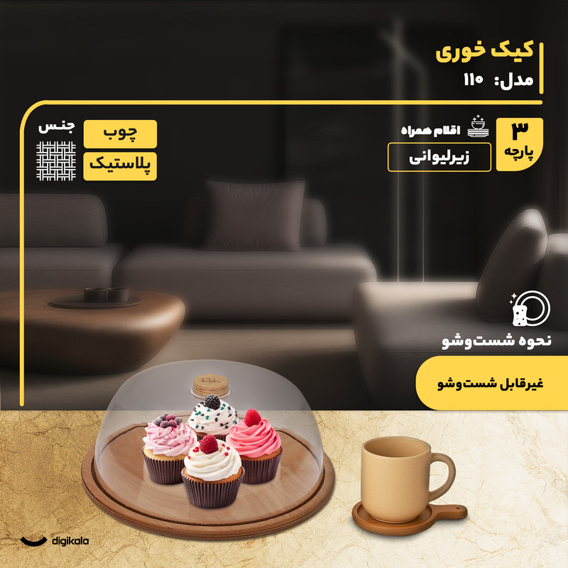 توضیحات وزن ظروف: ظرف کیک 850 گرم - زیرلیوانی 45 گرم