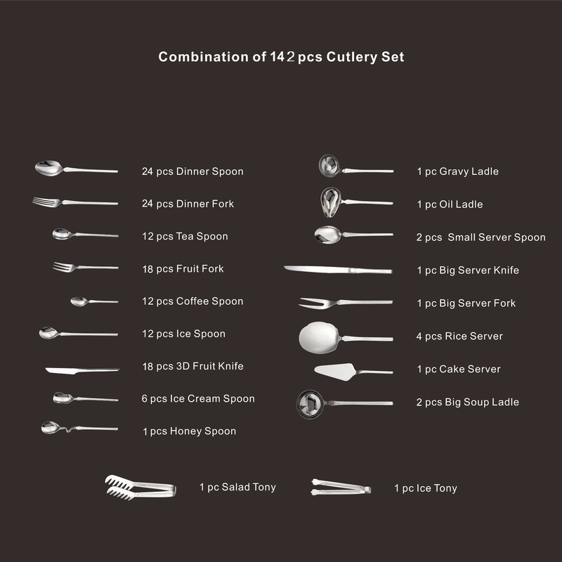 سرویس قاشق و چنگال 142 پارچه جی فی نی مدل 205 سوپر لاکچری
