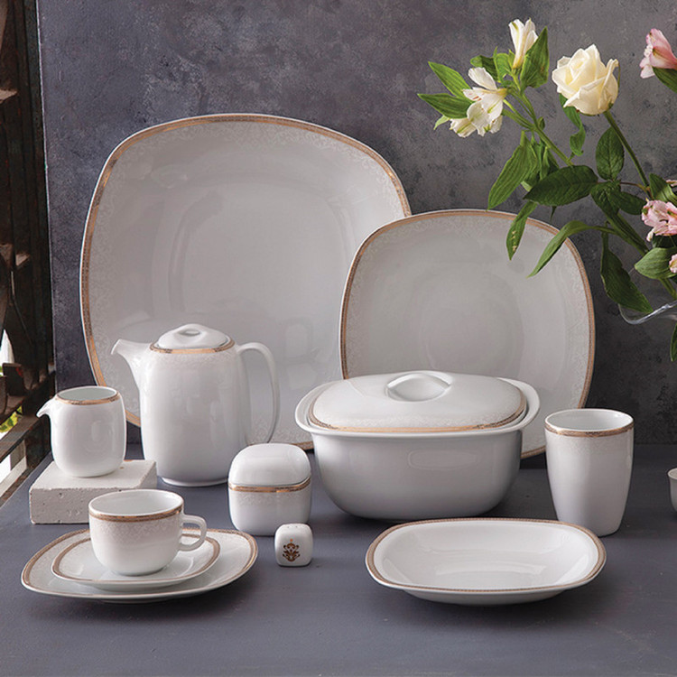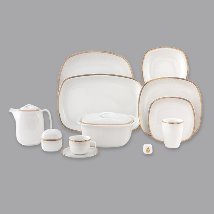 اقلام سرویس: سوپخوری , ظرف سالاد , دیس , بشقاب غذاخوری , بشقاب خورشخوری , پیشدستی , قوری چایخوری , فنجان , نعلبکی , نمکپاش و فلفلپاش , سالادخوری , قندان , شکرریز , لیوان , ادویهپاش