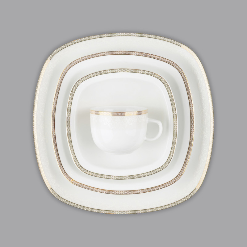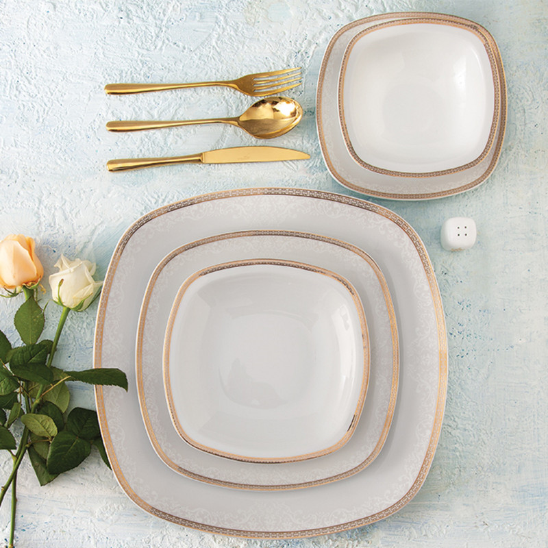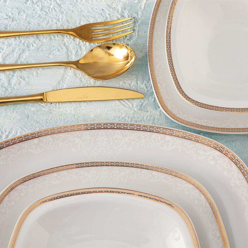 اقلام سرویس: سوپخوری , ظرف سالاد , دیس , بشقاب غذاخوری , بشقاب خورشخوری , پیشدستی , قوری چایخوری , فنجان , نعلبکی , نمکپاش و فلفلپاش , سالادخوری , قندان , شکرریز , لیوان , ادویهپاش