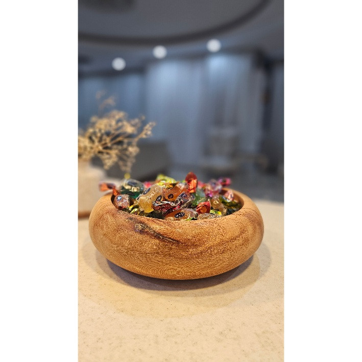 شکلات خوری چوبی دست ساز مدل گرد تهیه شده از بهترین نوع چوب چنار توسط استادکاران خراط تهیه گردیده است و مناسب دکوراسیون و پذیرایی می باشد بهترین انتخاب برای هدیه و دارای طراحی خاص می باشد