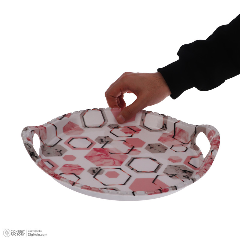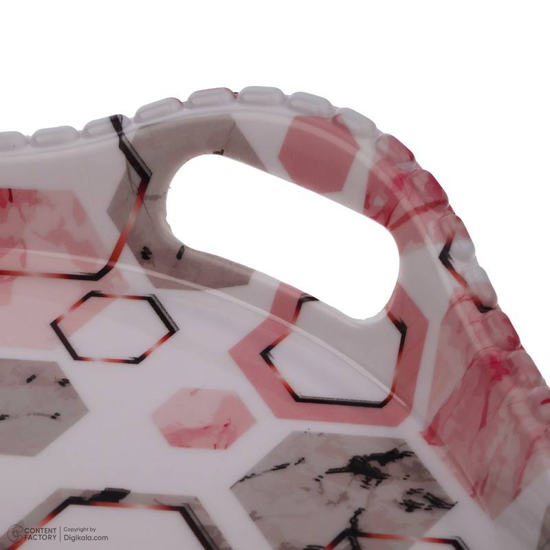 فرم طراحیدایرهجنسملامینوزن250 گرمابعاد32x32x32 سانتیمترسایر توضیحات- طرح گل بر روی محصول - دسته دار بودن محصولرنگصورتی