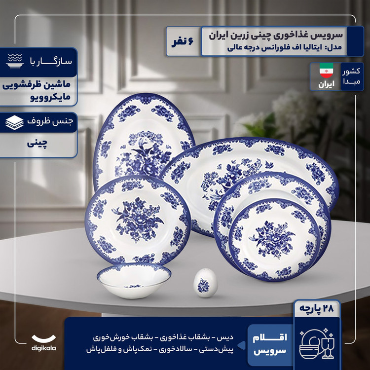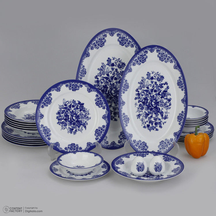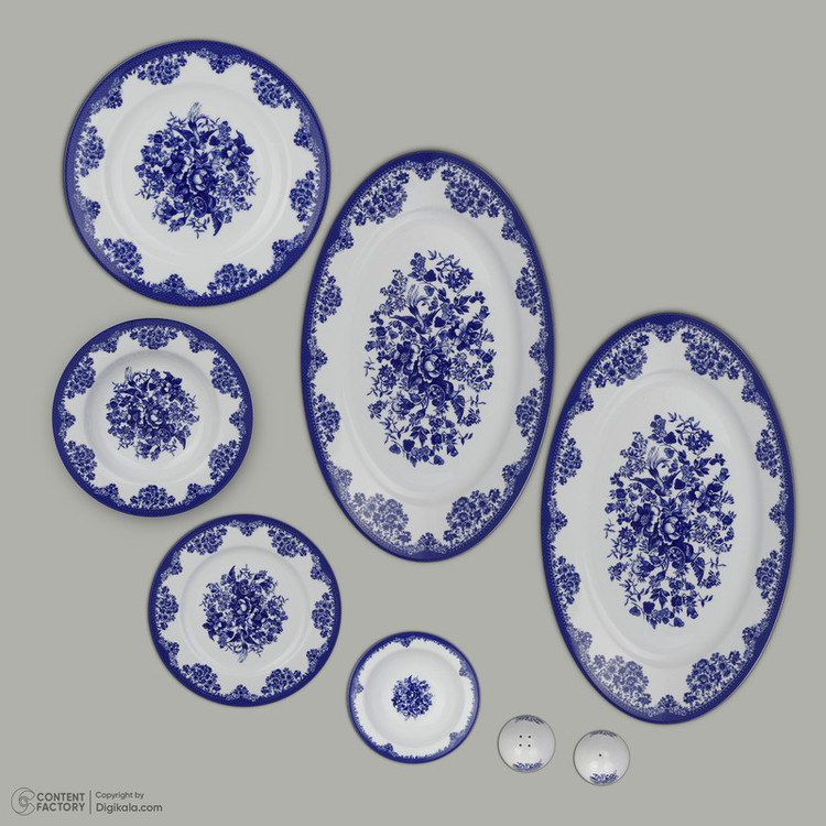 اقلام سرویس: دیس , بشقاب غذاخوری , بشقاب خورشخوری , سالادخوری , پیشدستی , نمکپاش و فلفلپاش