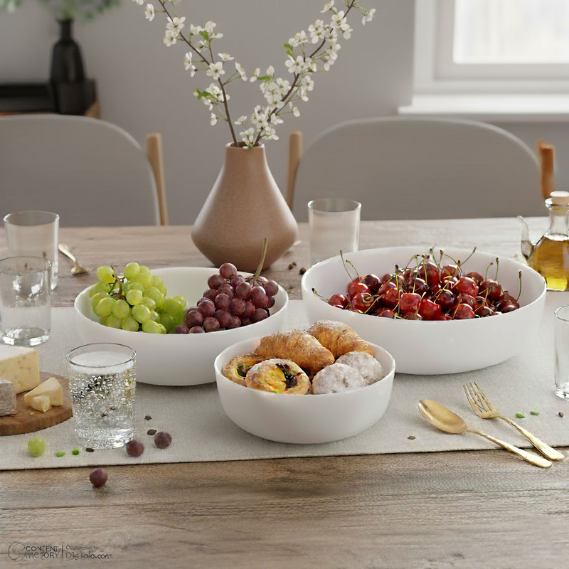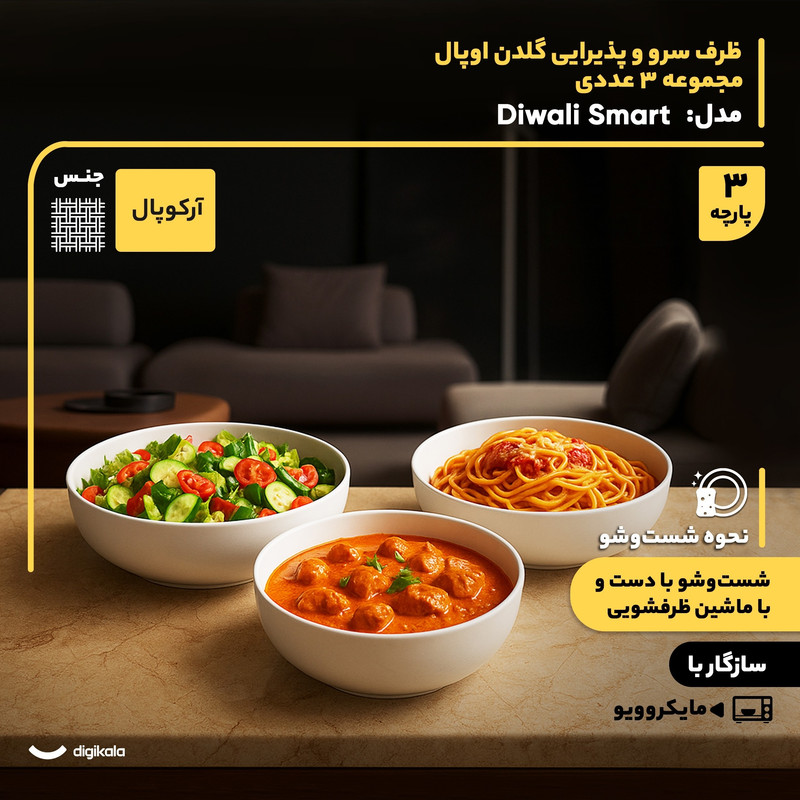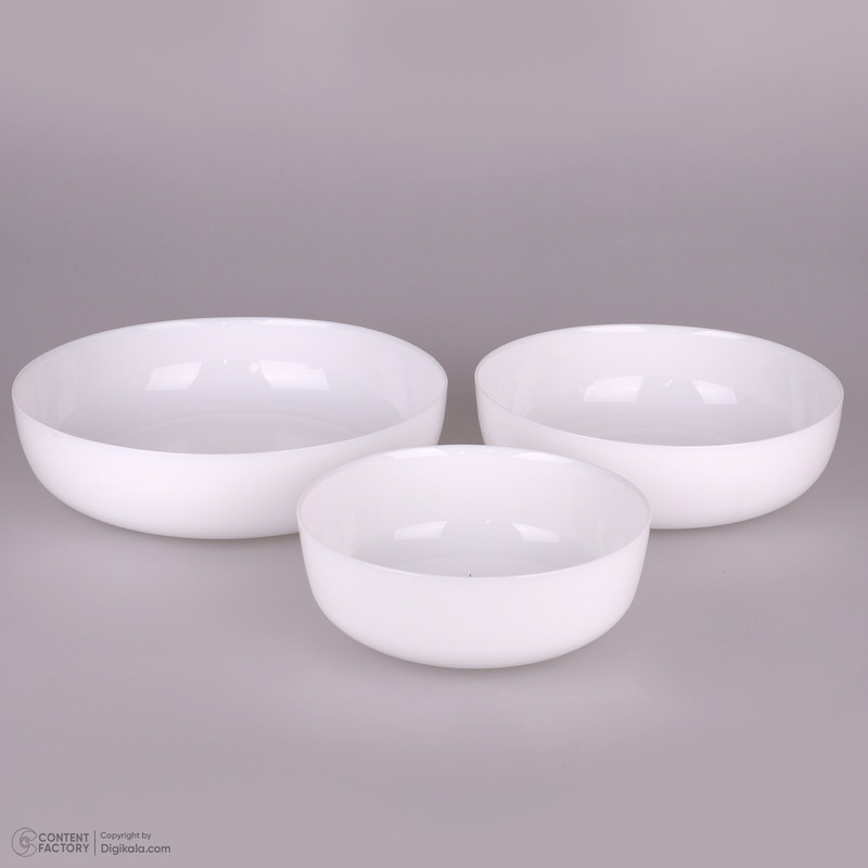 توضیحات ابعاد ظروف: کاسه بزرگ: ۲۶.۵x۲۶.۵x۶.۵ سانتیمتر - کاسه متوسط: ۲۱.۵x۲۱.۵x۶.۵ سانتیمتر - کاسه کوچک: ۱۷.۵x۱۷.۵x۶.۵ سانتیمتر