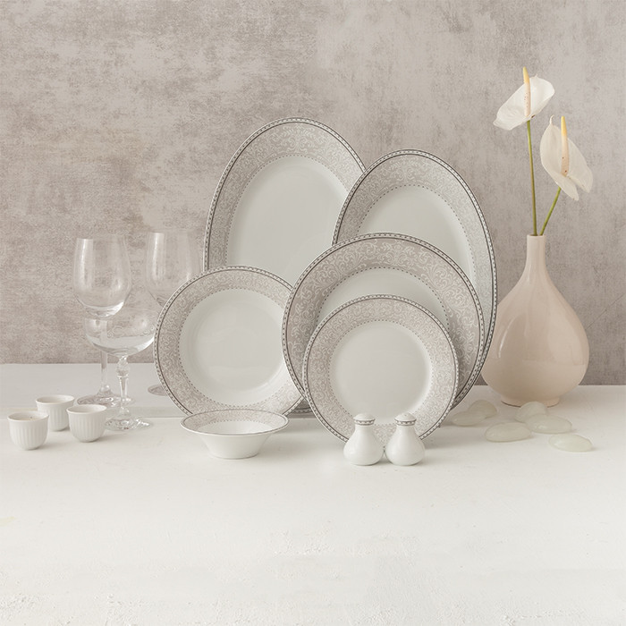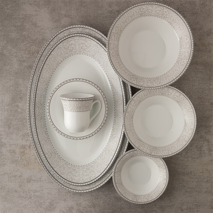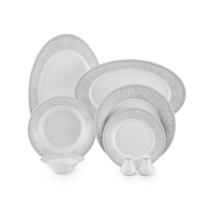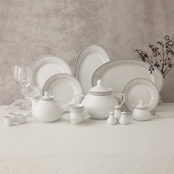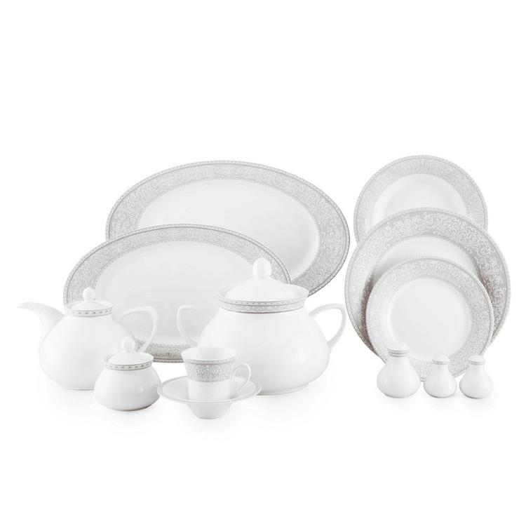 اقلام سرویس: سوپخوری , کاسه , دیس , بشقاب غذاخوری , بشقاب خورشخوری , پیشدستی , قوری چایخوری , فنجان , نعلبکی , قندان , شکرریز , نمکپاش و فلفلپاش , شیرخوری , پیاله